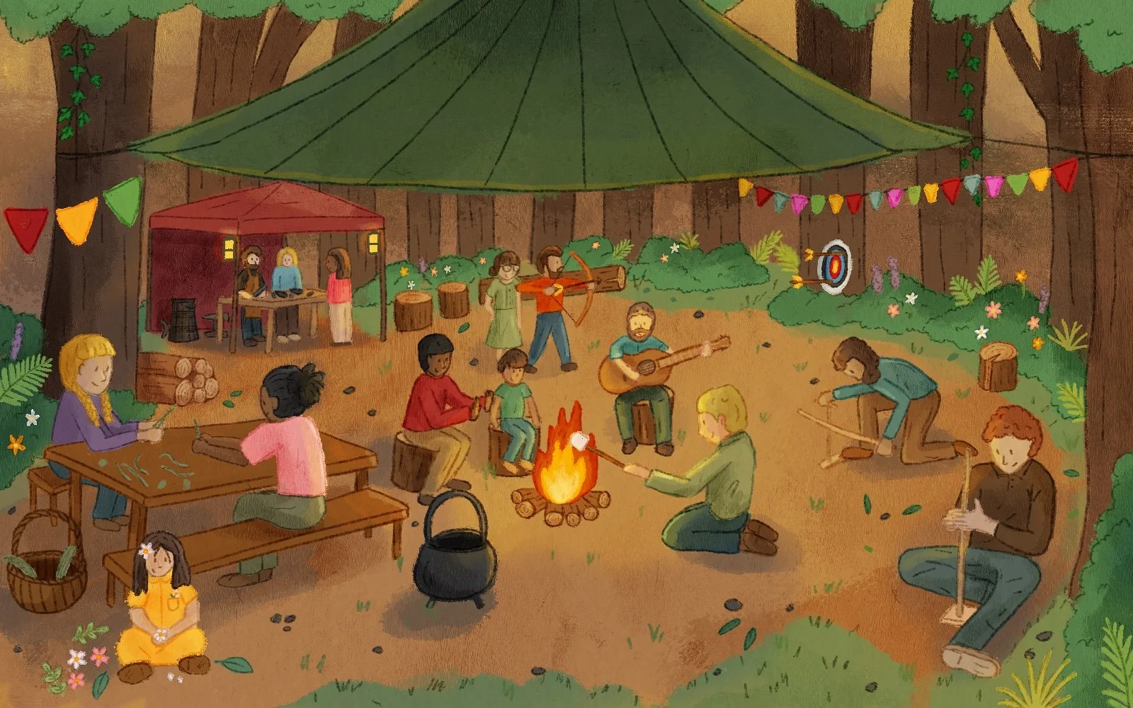 BushMoot is an amazing family-friendly gathering in the woods, where kids and grown-ups can learn bushcraft skills, explore nature, and camp out together. It’s like a big outdoor adventure holiday, with workshops on fire lighting, shelter building, foraging, carving, and loads more. Whether you're brand new to the outdoors or already love camping, BushMoot is a place to make friends, try new things, and have fun together around the campfire. It’s the perfect next step after a garden or woodland mini adventure!